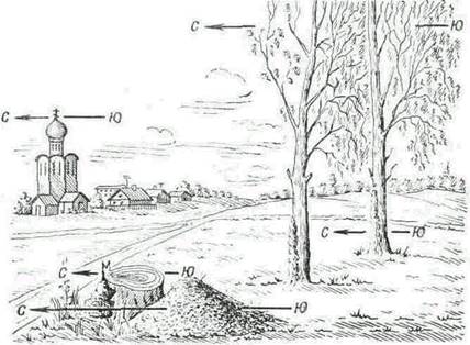 Рис. 4. Определение сторон горизонта по признакам местных предметов
