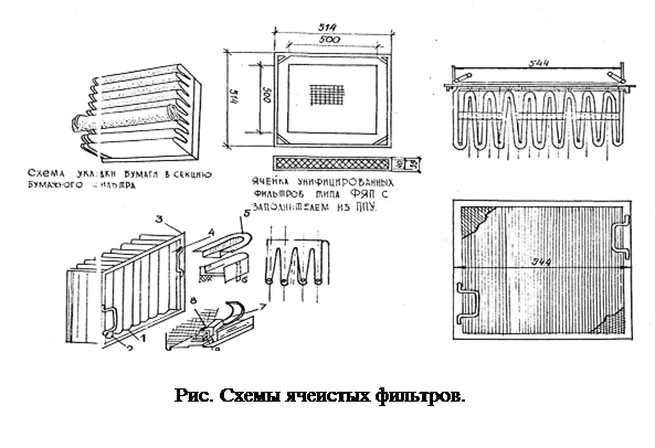 Аппараты с применением фильтров. Полная и тонкая очистка воздуха от пыли производится с помощью различных фильтров, устанавливаемых на пути прохождения запыленного воздуха после грубой очистки его в циклонах.