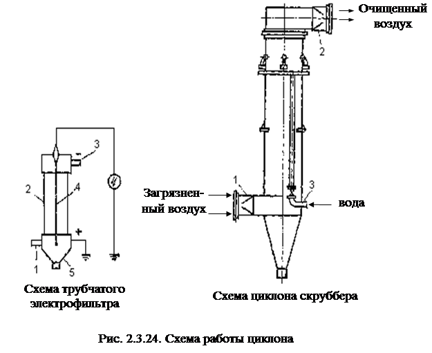 Работа электрофильтров основана на создании сильного электрического поля при помощи тока высокого напряжения (50-100 кВ), подводимого к коронирующим электродам (рис.2.3.24).