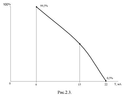 При кратковременном воздействии (0,1-0,5с) ток порядка 100мА не вызывает фибрилляции сердца. Если увеличить длительность воздействия до 1с, то этот же ток может привести к смертельному исходу. С уменьшением длительности воздействия значение допустимых для человека токов существенно увеличивается. При изменении времени воздействия от 1 до 0,1с допустимый ток возрастает в 16 раз.