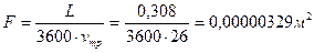 F1 =0,00000329 м2 , l1 =0,5 м, объем L1 =0,308 м3 /ч= 0,000085 м3 /с.