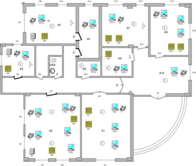 Способ физического проникновения предполагает выбор конкретного пути преодоления злоумышленником преград для доступа к защищаемым элементам информации. Этот путь может проходить через пространственные зоны, рассмотренный пространственной моделью. В рассматриваемой мной корпорации наиболее уязвимыми элементами информации являются: