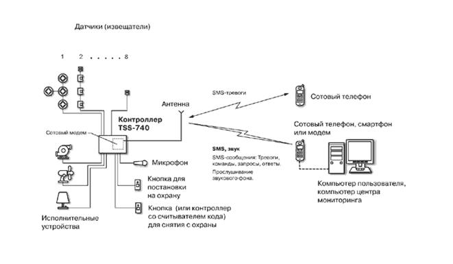 Контроллер охраны TSS-740 предназначен для построения различных систем охраны и контроля удаленных объектов, в том числе – охранно-пожарных систем.