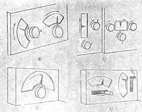 Некоторые варианты расположения шкал, указателей и ручек управления, а также направления их движения показаны на рис.4.
