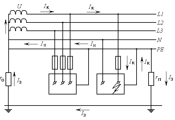 В сетях с изолированной нейтралью токи замыкания (в случае попадания напряжения на корпус) недостаточны по величине для срабатывания автоматического отключения. Поэтому в таких сетях используют защитное заземление.