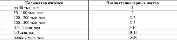 В зависимости от численности населения устанавливают следующее минимальное число стационарных постов: