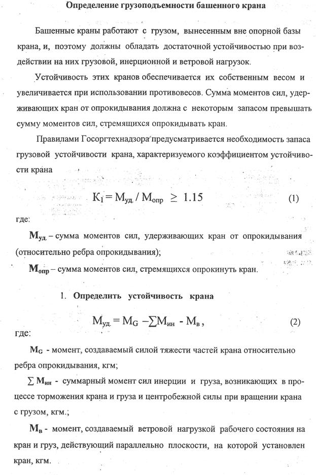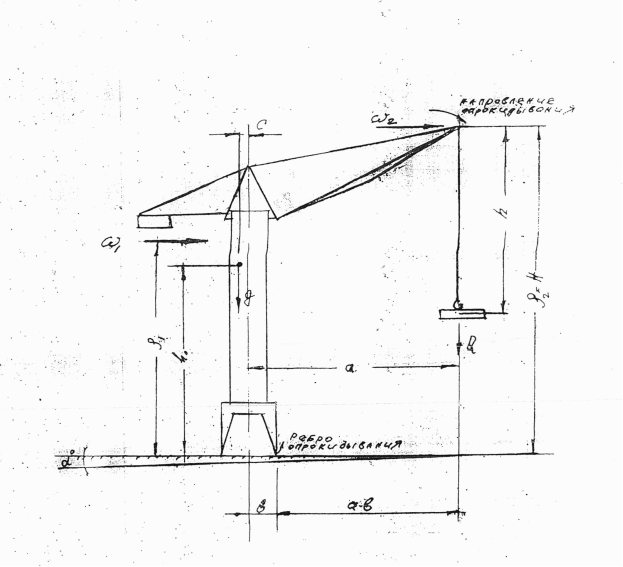 w1 ,w2 - напор ветра, воздействующего соответственно на башню крана и груз (принимаем в соответствии с исходными данными к курсовой работе);