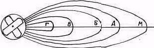 Нанесение прогнозируемых зон заражения (рис. 1, 2) начинают с того, что на карте обозначают эпицентр взрыва (аварии), вокруг него проводят окружность. Около окружности делают поясняющую надпись.