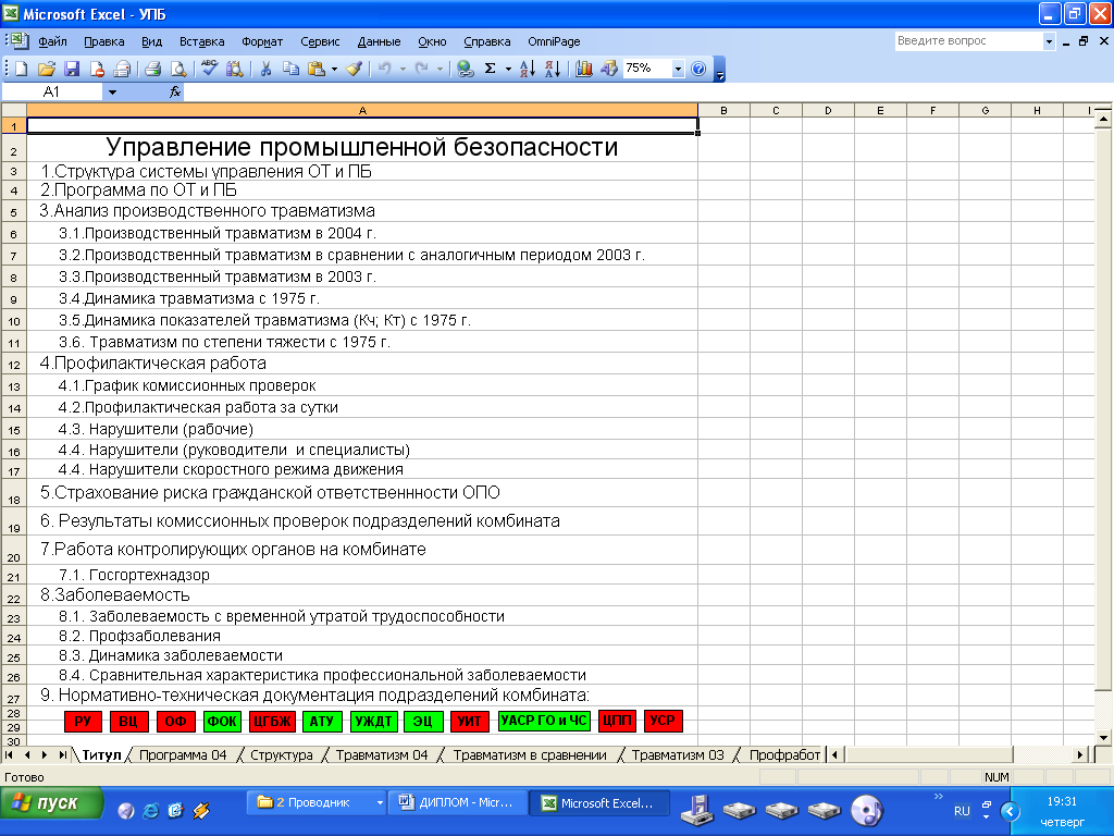 ВВЕДЕНИЕСнижение уровня производственного травматизма - одна из серьезнейших задач сегодняшнего дня. По данным Международной Организации Труда (МОТ) в 2000 году вследствие действия производственных факторов умерло 2 миллиона человек. Согласно данным Федеральной инспекции труда, общее количество пострадавших со смертельным исходом в России в 2001 году составило 6153 человека. В структуре основных причин смертности в связи с трудовой деятельностью несчастные случаи на производстве составляют 19%. [26]