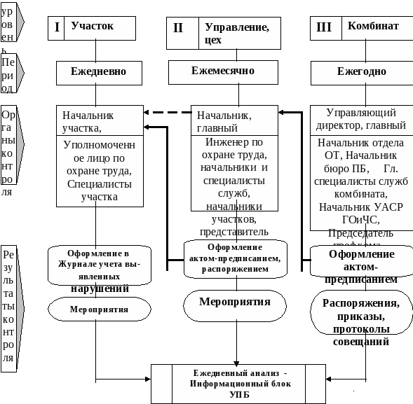 В настоящее время в ОАО «Лебединский горно-обогатительный комбинат» проводится работа по организации СУОТ и ПБ на соответствие международным стандартам серии ИСО и OHSAS. Для прохождения сертификации необходимо выполнить требования, предъявляемые международными стандартами. Одно из требований заключается в том, чтобы СУОТ и ПБ функционировала в соответствии с принципами, заложенными в международные стандарты, на всех иерархически выстроенных структурных подразделениях (бригада – участок – цех – служба – управление).