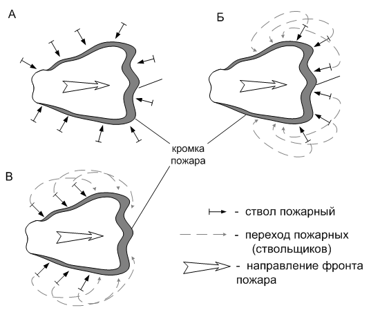 Пламя распространяется с разной скоростью и неоднократно меняет направление в зависимости от изменения направления ветра и наличия горючих материалов. Конфигурация кромки пожара сложная и неопределенная, в результате чего трудно выделить основные элементы пожара - фронт, тыл и фланги [5].