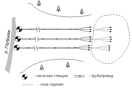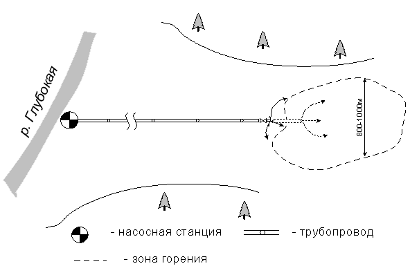 С учетом особенностей данного лесного участка составлен сценарий развития лесного пожара и приведен на рис. 1.4.
