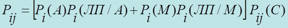 Величины Pi (А), Pi (ЛП/А), Pi (М), Pi (ЛП/М) можно найти, используя известное определение вероятности события через соответствующие частоты (статистическая модель риска)