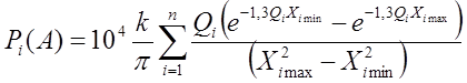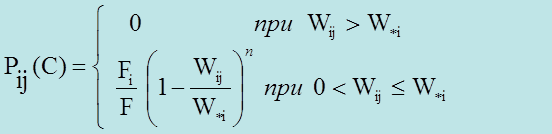Далее, после применения теории вероятностей и физических соображений, была получена следующая формула (динамическая модель) для оценки вероятности возникновения лесного пожара для j-го временного интервала лесопожарного сезона на i-й лесной территории [5-7]: