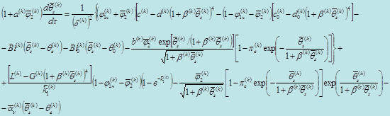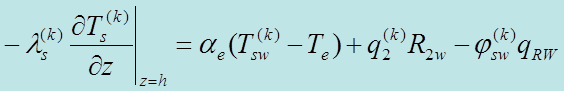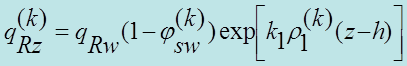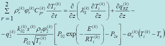 Уравнение (14) представляет собой баланс энергии в к-й фазе слоя РГМ, а уравнение (15) характеризует баланс влаги в слое РГМ, где черта сверху обозначает осреднение по высоте слоя РГМ.