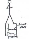Плотность людских потоков. Плотность людских потоков можно измерять в различных единицах. Так, например, для определения длины шага человека и скорости его движения удобно знать среднюю длину участка эвакуационного пути, приходящуюся на одного человека. Длина шага человека принимается равной длине участка пути, приходящейся на человека, за вычетом длины ступни (рисунок 1).
