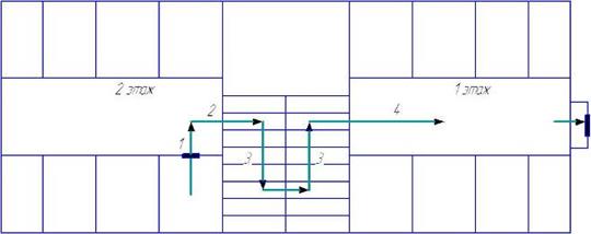 Протяженность путей эвакуации для общественных и жилых зданий предусматривается, как расстояние от дверей наиболее удаленного помещения до выхода наружу или в лестничную клетку с выходом наружу непосредственно или через вестибюль. Обычно при назначении величины предельного удаления учитываются назначение здания и степеньогнестойкости. Согласно СНиП П-Л.2–62 «Общественные здания», протяженность путей эвакуации до выхода в лестничную клетку незначительна и удовлетворяет требованиям безопасности.