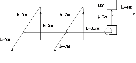 Исходные данные: Количество выделяющихся вредностей: m вр . = 1,2 кг/час пыли, Q я изб . = 26 кВт. Параметры помещения: 9´26´6 м. Температура воздуха: t п . = 21 °С, tу. = 24 °С. Допустимая концентрация пыли Сд . =50 мг/м2 . Число работающих: 80 человека в смену. Схема размещения воздуховода приведена на рис.3.1. Подобрать необходимый вентилятор, тип и мощность электродвигателя и указать основные конструктивные решения.