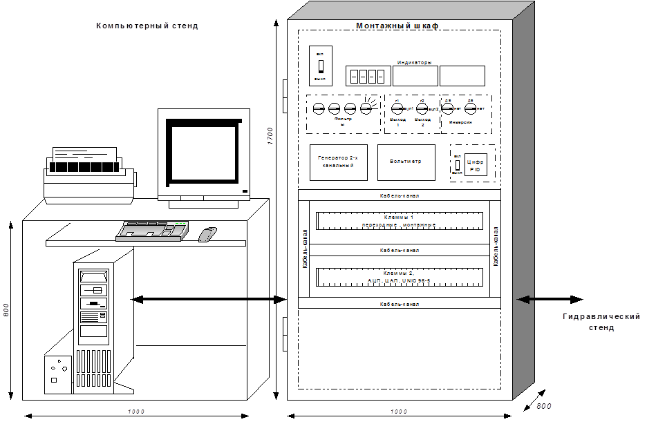 Модуль управления – стационарная лабораторная установка, состоящая из компьютерного стола, монтажного шкафа и кабелей соединения. Устройств, образующих холод, нет. Устройства, вырабатывающие тепло, скрыты защитной оболочкой и имеют радиаторы (процессор в системном блоке, радиаторы блоков питания, лампа освещения в монтажном шкафу закрыта плафоном и т.д.). Инженер-исследователь (обслуживающий персонал) не имеет права открывать монтажный шкаф (снимать кожух с системного блока) и проводить работы, он должен вызвать соответствующий персонал.
