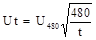 Зависимость допустимых значений нормируемого параметра Ut от времени фактического воздействия вибрации t, не превышающего 480 мин, определяют по формуле