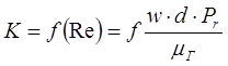 К — коэффициент сопротивления, который является функцией критерия Рейнольдса (Re) и определяется опытным путем.