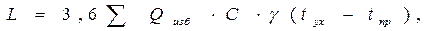 Важным мероприятием нормализации микроклимата является вентиляция. В помещениях с интенсивными источниками конвекционного и лучистого тепла используются аэрация, обеспечивающая удаление избыточного тепла в верхней зоне помещения через шахты, окна и т.д., общеобменная механическая приточно-вытяжная вентиляции. Количество воздуха L (в м3 /ч), необходимого для обеспечения нормируемых параметров в помещениях с избытками тепловыделения, рассчитывается по формуле: