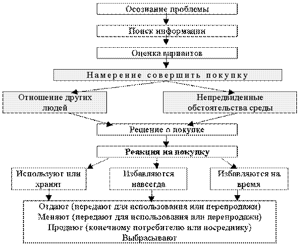 Однако намерение не всегда переходит в решение совершить покупку. Человек в той или иной степени бывает, подвержен влиянию других людей и непредвиденных обстоятельств, которые в самую последнюю минуту могут повлиять на решение о покупке [3].