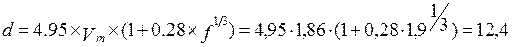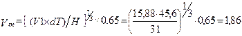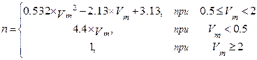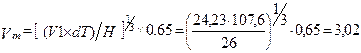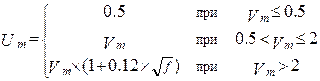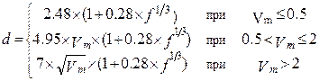 Коэффициенты m и n определяются в зависимости от параметров f и Vm , которые рассчитываются по нижеприведенным формулам.