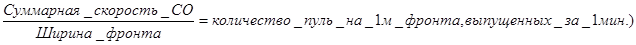 | Наименование вооружения | Количество выстрелов в минуту (в/м) | Количество выстрелов в минуту из данных огневых средств | Количество пуль на 1м фронта за 1мин. |