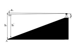 Как видно из рисунков фактические отсчёты b1 и b2 по рейке должны быть исправлены, а в данном случае изменены на величину погрешности Х. Таким образом правильные отсчёты по рейкам будут: