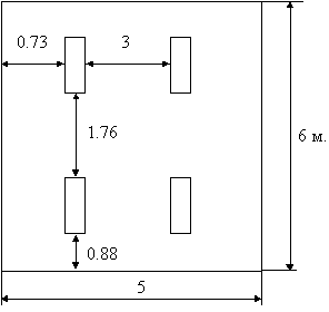 L - расстояние между соседними светильниками (рядами люминесцентных светильников), Lа (по длине помещения) = 1,76 м, Lв (по ширине помещения) = 3 м.