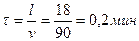 Т.к. l=0 м, то τ2 =τзад =1,36 мин