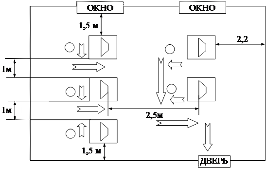 Схема размещения рабочих мест в помещении ВЦ представлена на рисунке.