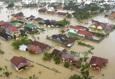 Наводнение - это интенсивное затопление большой территории водой выше ежегодных уровней, одно из стихийных бедствий. Отмечается при половодьях, паводках, прорывах дамб и плотин.
