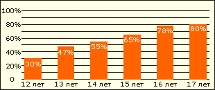 По сведениям НИИ санитарного просвещения МЗ СССР, датируемых началом 80-х годов, на основе обследований 12 275 человек в 20 годах страны, среди школьников 4-8 классов курят 47.1 процента мальчиков и 17.3 процента девочек, в 9-11 классах соответственно 78.9 и 45.3 процента[3] . Цифры поражают. А к 2006 году статистика показывает, что 59 процентов российских подростков в возрасте от 12 до 17 лет хотя бы раз в жизни пробовали сигарету. Причем, если среди 12-летних таких подростков 30 процентов, то среди 16-летних эта цифра возрастает почти вдвое. Различия в опыте курения между мальчиками и девочками очень велики (почти на 30%) - пробовали курить 74 процента мальчиков и 44 процента девочек. В случае с подростками младше 15 лет статистика показывает 62 процента против 26 процентов соответственно. В возрастной категории 15 лет и старше эта разница немного сокращается: 85 процентов мальчиков против 63 процентов девочек. В ходе исследования этой статистики были обнаружены некоторые различия в уровне курения среди подростков по другим социально-демографическим показателям, таким как район проживания, состав и тип семьи и т.п. Доля пробовавших курить немного выше среди подростков, проживающих в Восточной Сибири и Дальнем Востоке (66 процентов), чем в других регионах страны. Доля курящих подростков также выше среди детей из неполных семей (64 процента) и среди тех, чьи родители курят (66 процентов). Средний возраст подростка во время первого опыта с сигаретой - 11,5 лет. 23 процента попробовали первую сигарету до достижения 10-летнего возраста, 33 процента - между 10 и 12 годами, и 43 процента - после 12 лет. Средний возраст первого опыта курения тесно связан с возрастной группой, к которой принадлежит респондент[4] . Другим определяющим фактором, связанным с возрастом первого опыта курения, является пол. Мальчики пробуют сигареты в более раннем возрасте, чем девочки (10.8 года для мальчиков по сравнению с 12.7 года для девочек).