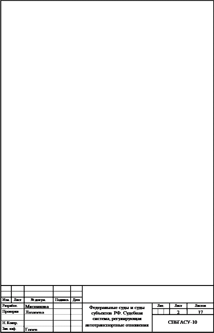 Были рассмотрены федеральные суды, суды субъектов РФ, вопросы об ответственности на автотранспорте и уголовной ответственности за преступления на транспорте.
