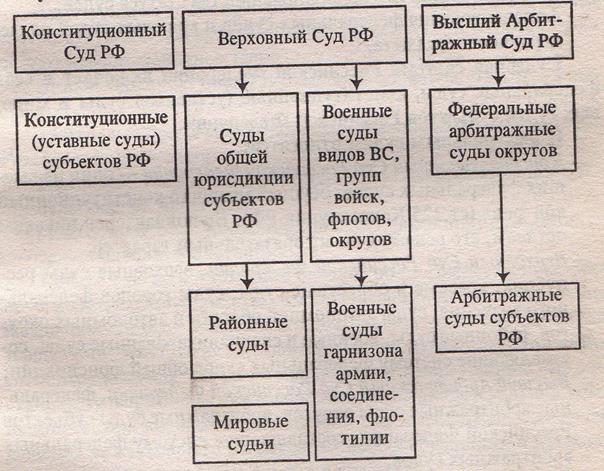 - Верховный Суд Российской Федерации , верховные суды республик, краевые и областные суды, суды городов федерального значения, суды автономной области и автономных округов, районные суды, военные и специализированные суды, составляющие систему федеральных судов общей юрисдикции;