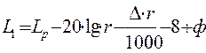 r – кратчайшее расстояние от центра источника шума до расчетной точки, м;