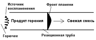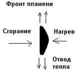 Фронт пламени имеет величину 10 -2 – 10 -4 см. Ск-ть движения фронта хар-ся нормальной ск-тью распространения пламени Uнорм .