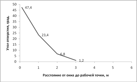 4. Построить зависимости углов падения и отверстия от расстояния (окно – рабочее место) в помещении.