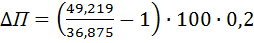 - Прирост производительности труда, %, можно рассчитать также по показателю работоспособности: