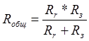 R общ – общее сопротивление заземлителей, Ом.