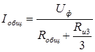 I общ - общий проходящий ток через два заземлителя (тело человека и заземлитель), Ом;