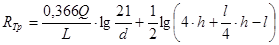 где Q1; Q2 —удельное электрическое сопротивление соответственно верхнего и нижнего слоя земли, Ом-м; h1—толщина верхнего слоя земли, м; a , b —безразмерные коэффициенты, зависящие от соотношения удельных электрических сопротивлений слоев земли. Если Qi>Q2, то a =3,6, b =0,1; если Q1<Q2, то a =1,1 × 10 2 , b =0,3 × 10 -2 .