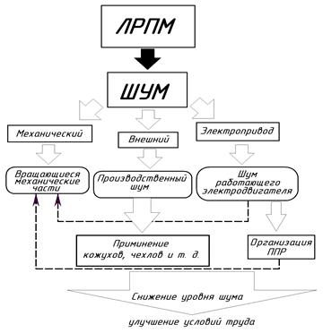 В помещениях, где стоят ЛРМ шум в основном возникает от вибрации поверхностей оборудования, этот шум можно снизить звукоизолирующими преградами в виде стен, перегородок, перекрытий, специальных звукоизолирующих кожухов, кабин, экранов, которые размещаются на пути его распространения, а также своевременной заменой старых износившихся (сильно шумящих) поверхностей оборудования на новые.