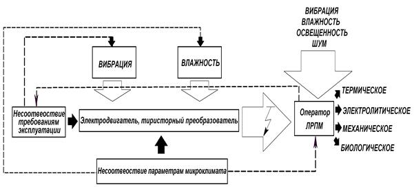 Воздействия электрического тока на оператора при эксплуатации ЛРПМ представлен на рис. 1.25. Источником электрического тока в ЛРПМ может быть: электродвигатель, тиристорный преобразователь, пульт управления, и др.