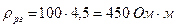 где ρрв – удельное сопротивление грунта принятое равным 100 Ом∙м