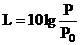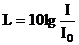 где L — уровень силы (интенсивности звука), дБ (децибел)