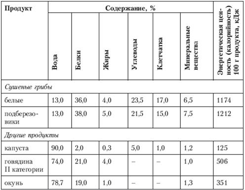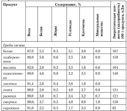 Информация о пищевой ценности грибов представлена в табл. 2.3.