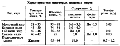 Подразделение жиров по их происхождению на полноценные (животные) и неполноценные (растительные), применяемое до недавнего времени, не имеет под собой каких-либо объективных обоснований. Как энергетические вещества они не обладают существенными различиями. В отношении же усвояемости растительные масла характеризуются даже лучшими показателями, чем некоторые тугоплавкие животные жиры, что связано с трудностью эмульгирования последних. Наконец, по своему качественному составу ни один из используемых в питании человека натуральных жировых продуктов не является биологически полноценным во всех отношениях.
